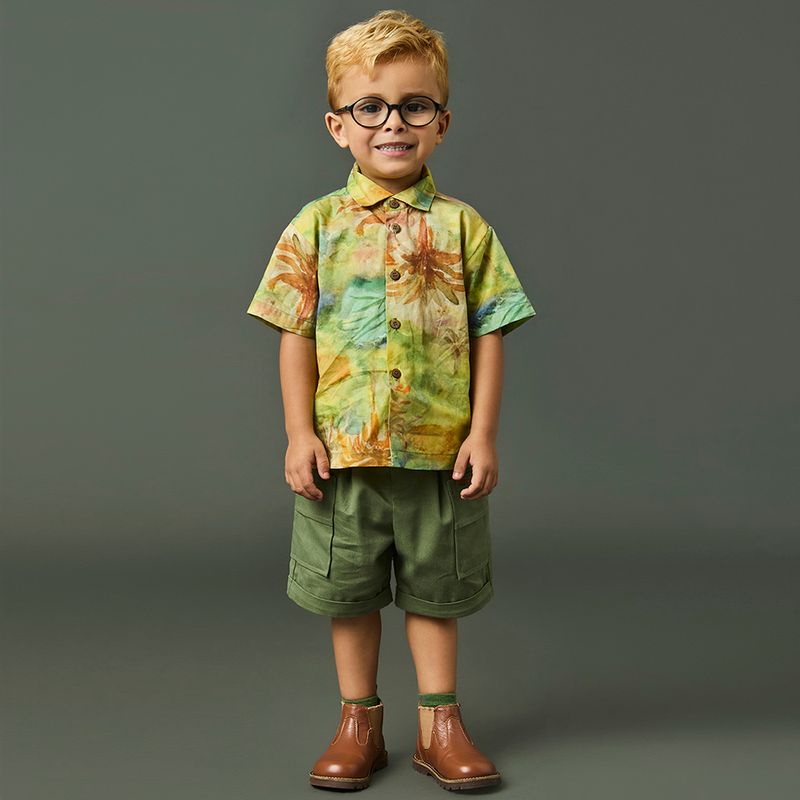 Bermuda Toddler Menino Sarja Side Pockets Verde | Coleção "Reencontro" Green.