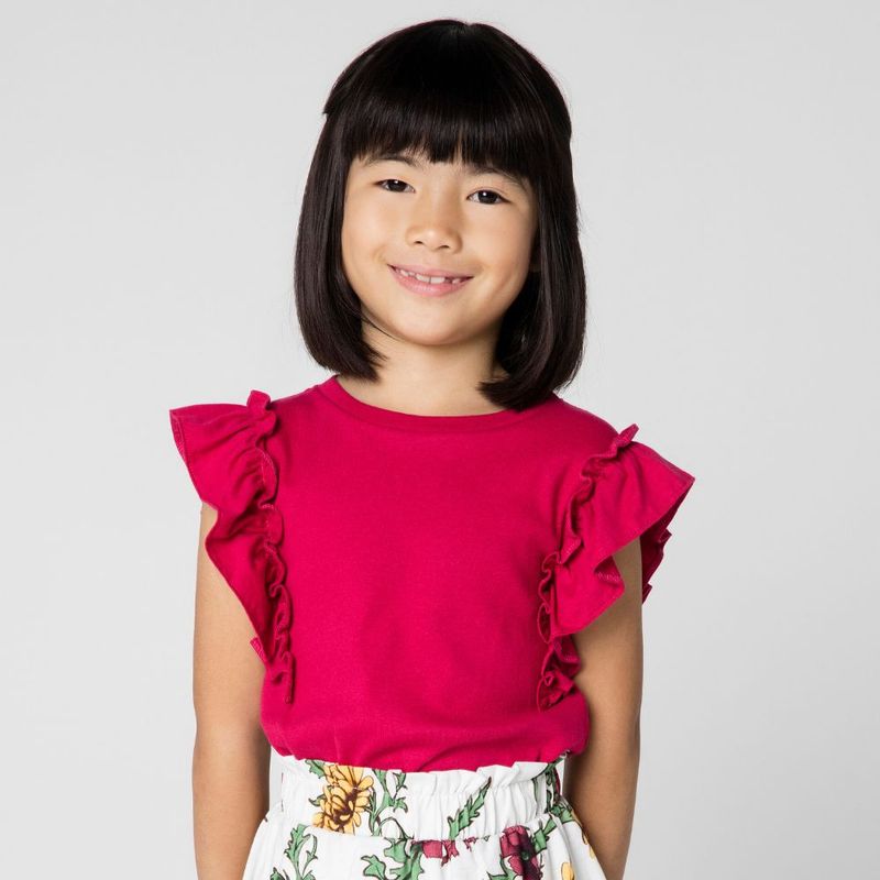 Blusa Infantil Menina Rib Babados Rosa | Coleção "Memórias Afetivas" Green By Missako.