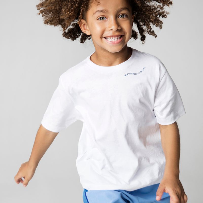 Com a camiseta infantil menino vacation mode on branca, seu filho estará confortável, estiloso e pronto para qualquer ocasião!