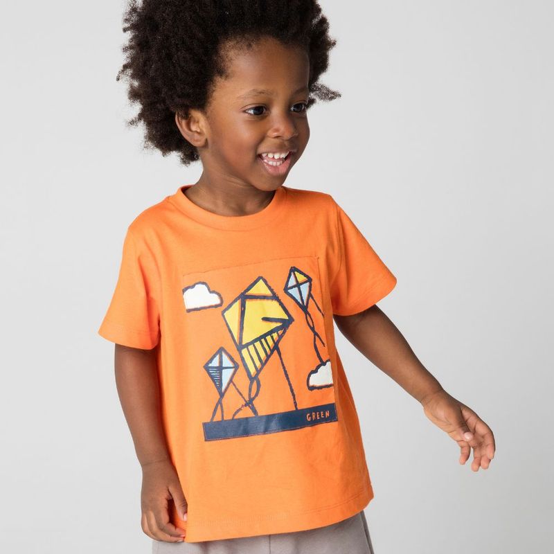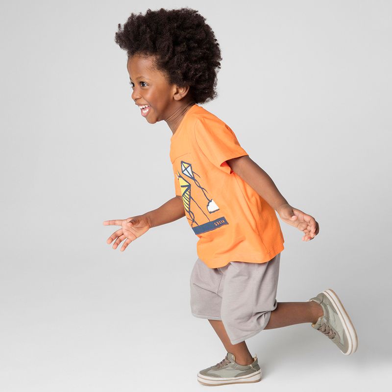 Com o conjunto toddler menino pipa laranja, seu filho estará confortável e estiloso, pronto para aproveitar o verão.