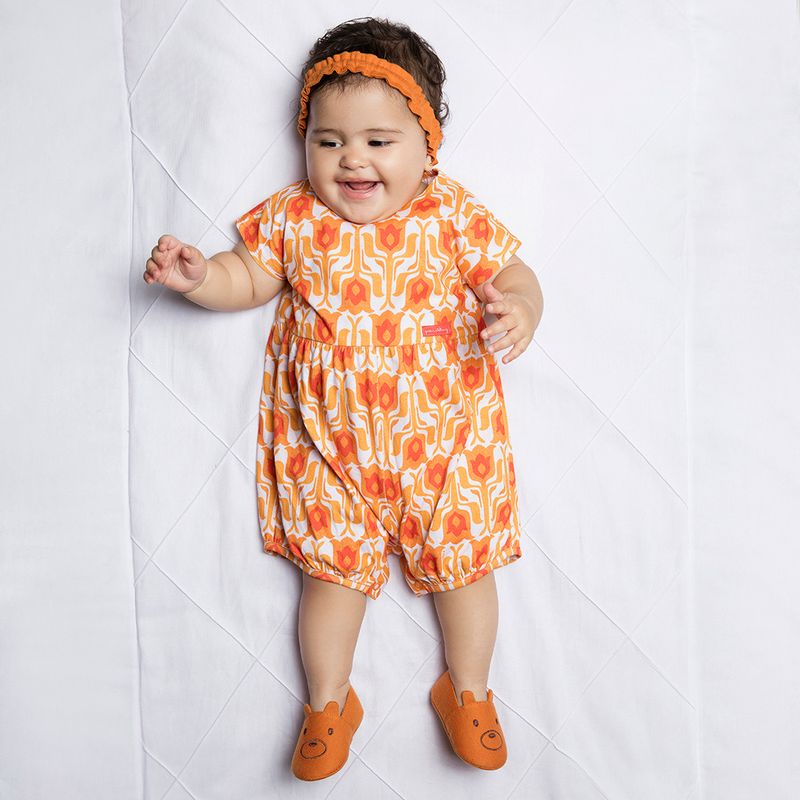 Macacão Bebê Menina Verão Laranja | Coleção "Memórias Afetivas" Green By Missako.