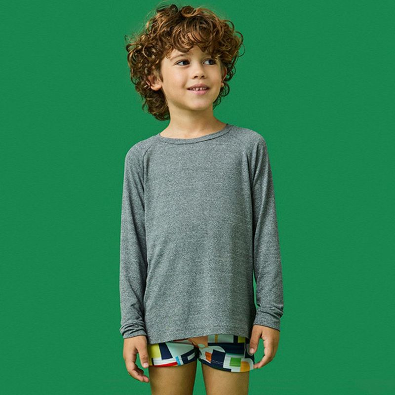 Com a raglan infantil menino praia UV cinza, seu filho estará confortável, estiloso e pronto para os dias de passeios.
