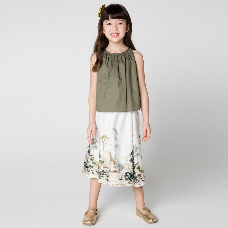 A saia infantil menina savana branca é a escolha ideal para garantir conforto e estilo à sua pequena. Confeccionada em tricoline galles de alta qualidade, ela oferece um visual leve e fluido, com um toque de sofisticação, perfeita para compor visuais elegantes para o dia a dia.
