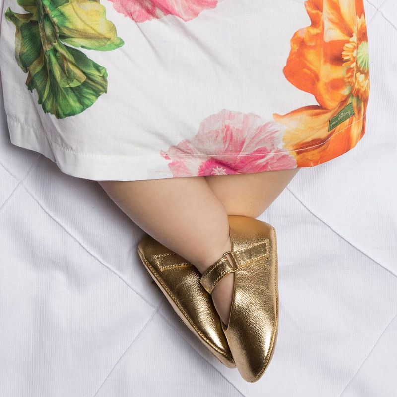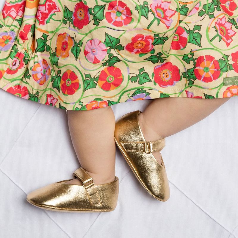Com o sapato bebê menina jardim dourado, sua bebê estará confortável, estiloso(a) e pronto(a) para brilhar em qualquer ocasião!