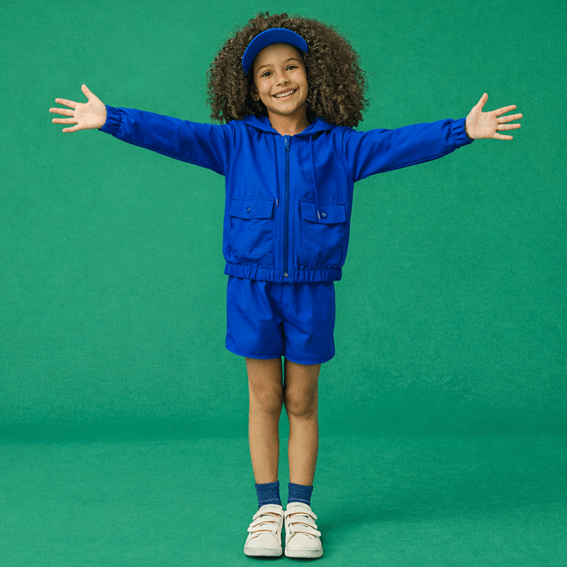 O short infantil menina play azul é confeccionado nylon techno light de alta qualidade. Trazendo estilo e um design moderno, nosso compromisso é aliar proteção, praticidade e conforto dos pés à cabeça.