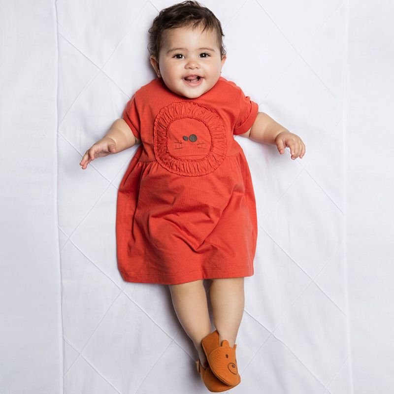 Vestido Bebê Menina Leão Laranja | Coleção "Memórias Afetivas" Green By Missako.