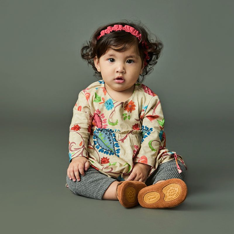 Vestido Bebê Menina Moana ML Caqui | Coleção "Reencontro" Green.