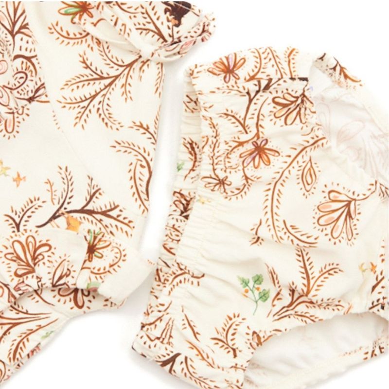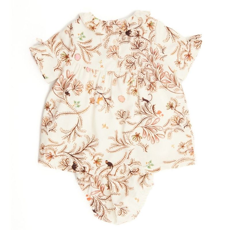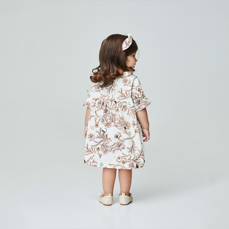 O vestido toddler dream off-white é confeccionado em fustão ruth estampado de alta qualidade. Este vestido é a escolha perfeita para um verão fresco e confortável. Oferece um caimento leve e fluido que dá vida ao look da sua pequena.