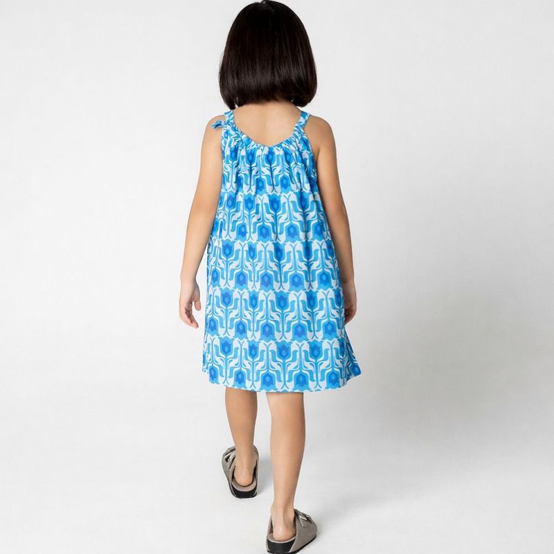 Com um design simples e elegante, o vestido é estampado por toda sua extensão, oferece caimento impecável, destacando-se pelo toque suave e natural do algodão. Sua modelagem estruturada garante que a pequena se sinta à vontade, enquanto o toque delicado do tecido completa o look com sofisticação.