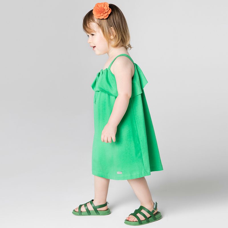 Com o vestido toddler menina babado verde, sua filha se sentirá confortável, estilosa e pronta para aproveitar os dias mais quentes com muito charme e praticidade.